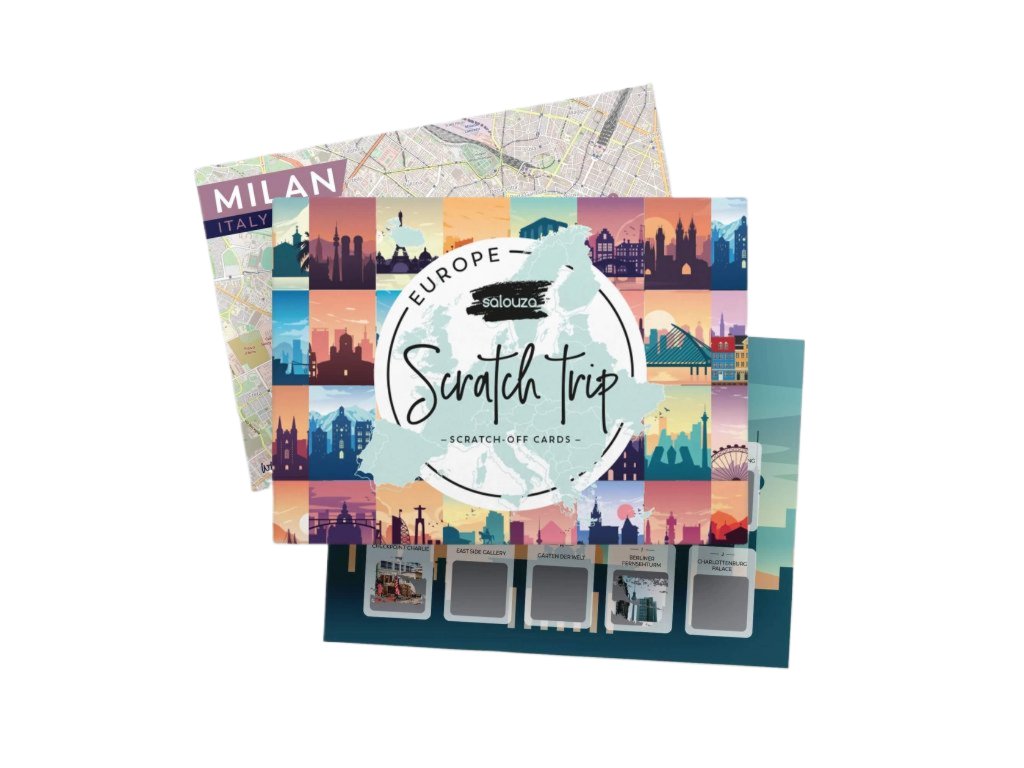 Originální stírací karty vám pomohou zdokumentovat vaše cesty a uchovat důležité vzpomínky z cest. Tyto karty obsahují 60 měst, přičemž každé z míst obsahuje dalších 10 míst a atrakcí, které nemůžete ve vybraném městě vynechat. Je to skutečně ideální cestovní doplněk pro ty, kteří vždy touží navštívit nová vzrušující místa a zároveň nepřetržitě vzpomínat na své cesty.