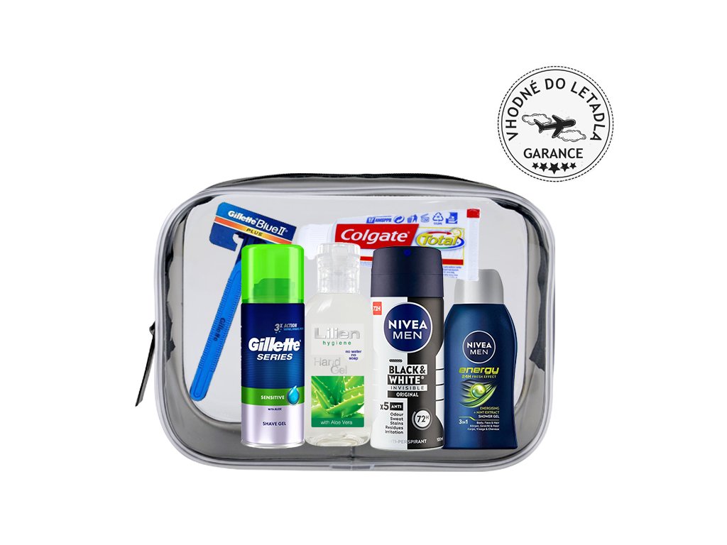 Každý cestovatel se chce na svých cestách cítit svěže a upraveně. A proto jsme pro vás připravili cestovatelskou sadu, ideální pro každého cestovatele. Naleznete v ní vše potřebné pro svoji péči o vousy, zubní pastu Colgate nebo ústní vodu Listerine. Samozřejmě nesmí chybět základní potřeby jako sprchový gel 2v1 značky Nivea a antibakteriální gel na ruce.
