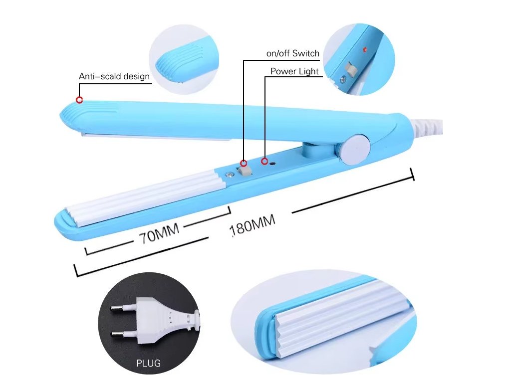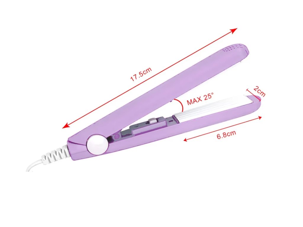 - Klasická žehlička na vlasy v mini provedení s keramickými destičkami se snadno používá a umožní vám snadno dokončit účes