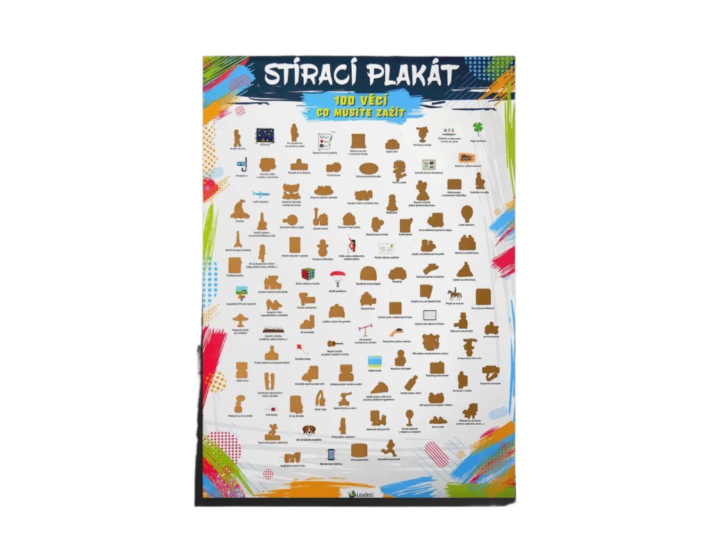 Od skoku padákem, přes den bez mobilu, let letadlem, návštěvu kina bez doprovodu, naučení se hrát na nový hudební nástroj, až po vyzkoušení bláznivé atrakce na pouti. To vše a ještě více můžete zažít s tímto stíracím plakátem zážitků.